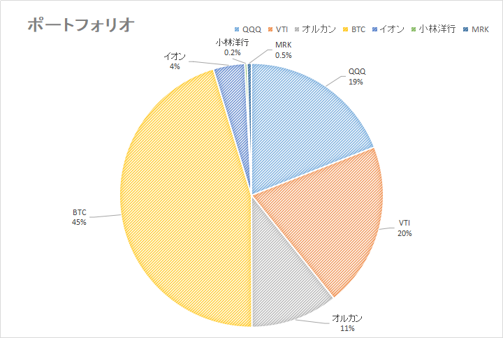 暗号資産の割合が大幅に上がりました。オルカンを売ったからですけど。